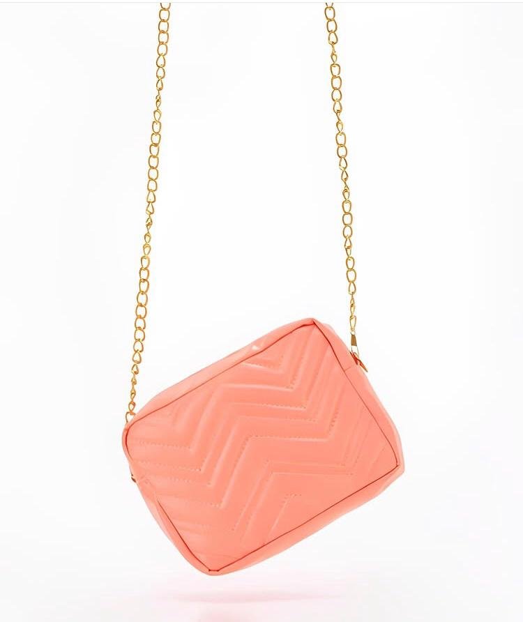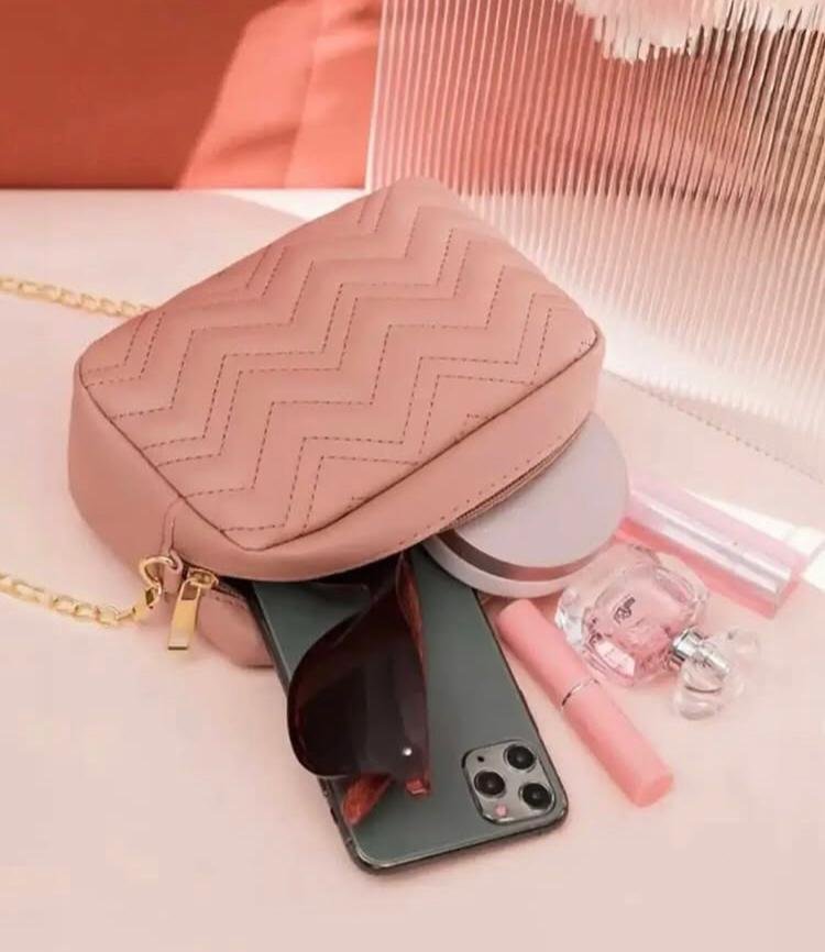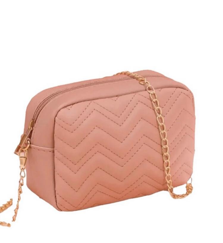 Stay effortlessly stylish with this chic Blush Pink Quilted Crossbody Bag. Featuring a soft quilted chevron pattern and a sleek rectangular silhouette, this bag is the perfect blend of elegance and convenience. Its compact size makes it ideal for carrying your everyday essentials, while the gold-tone chain strap adds a touch of glamour for both day and night looks.
